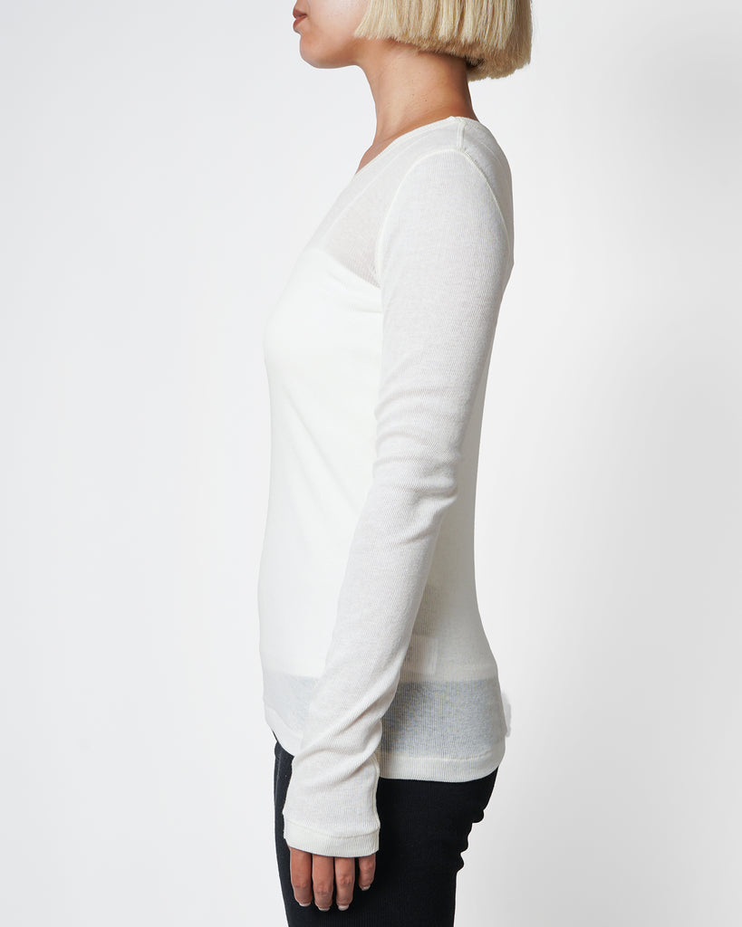 コットンカシミヤのクルーネックは、縫い目をフラットに仕上げているので、肌に縫い目が当たりにくく、毎日着たくなる心地よさ。薄手で軽いのに、カシミヤが入っているため暖かく、通気性も◎