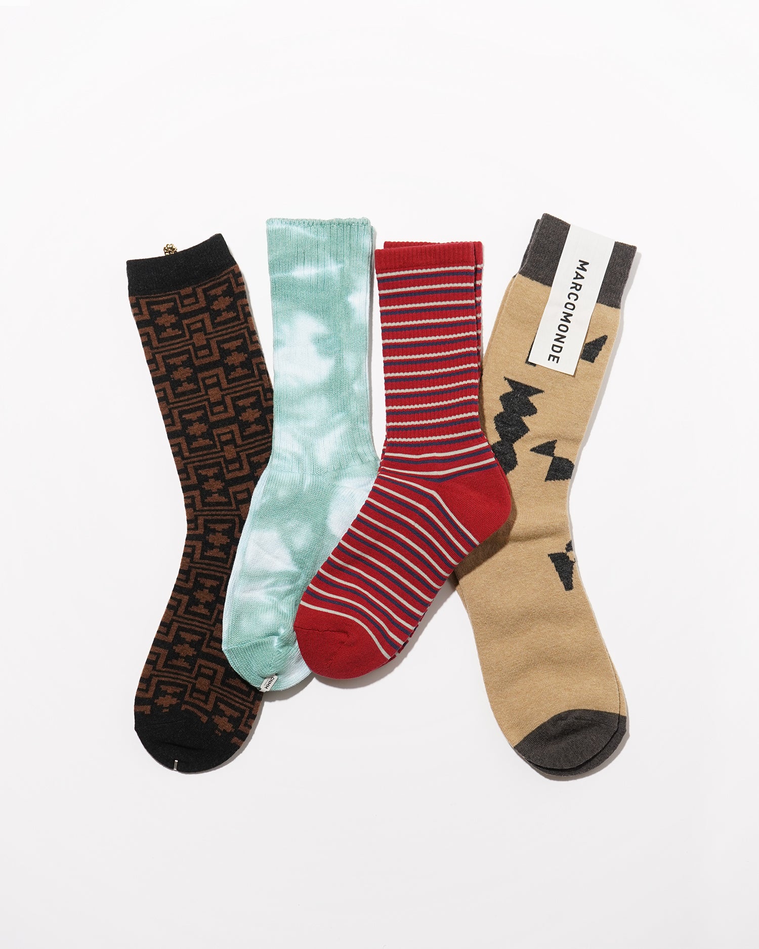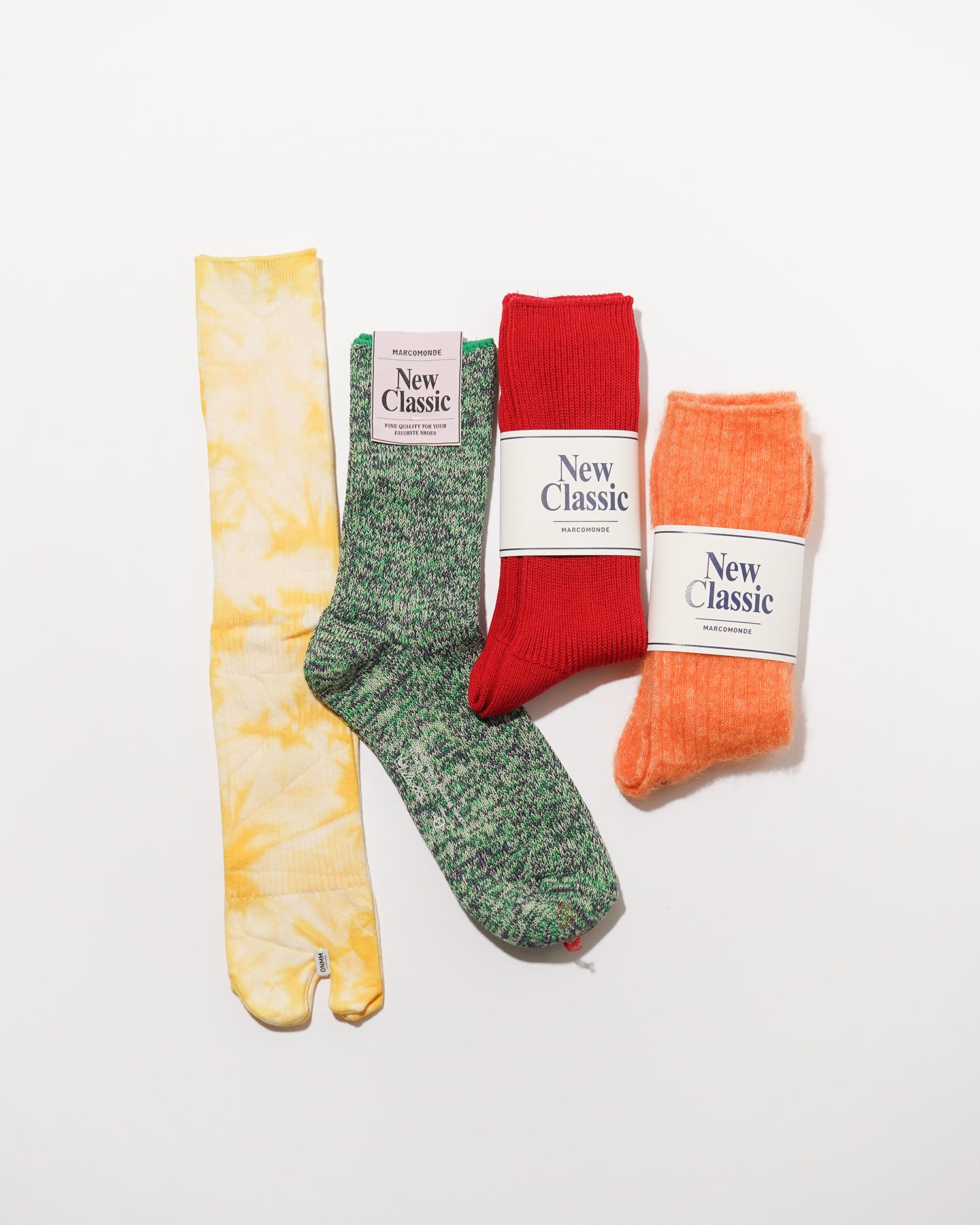 今年はや冬のスタイリングのアクセントになる赤やイエローのソックスや普段使いしやすいベージュやブラウンのソックスが入っています。