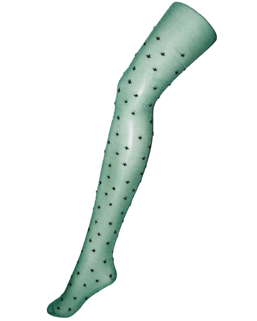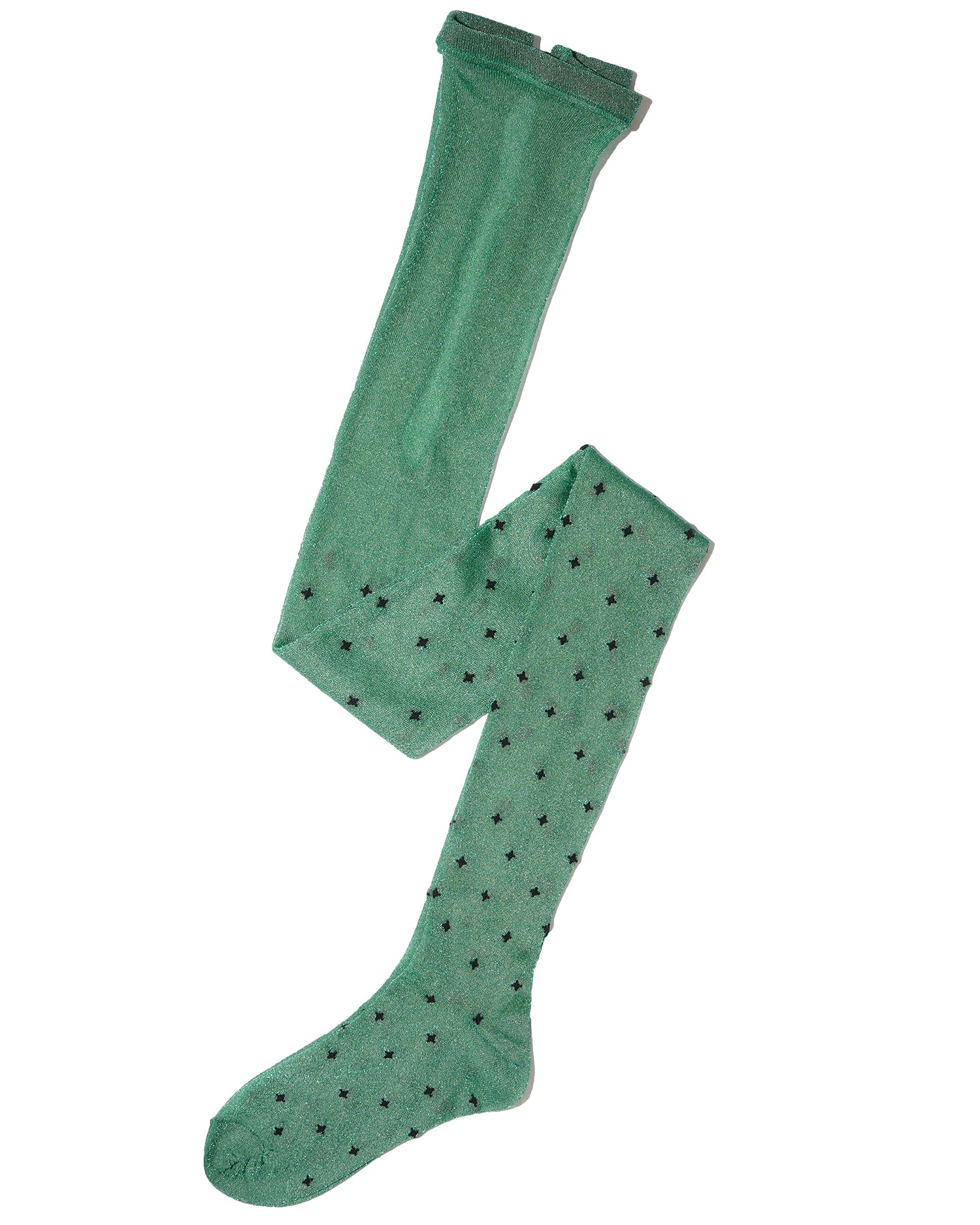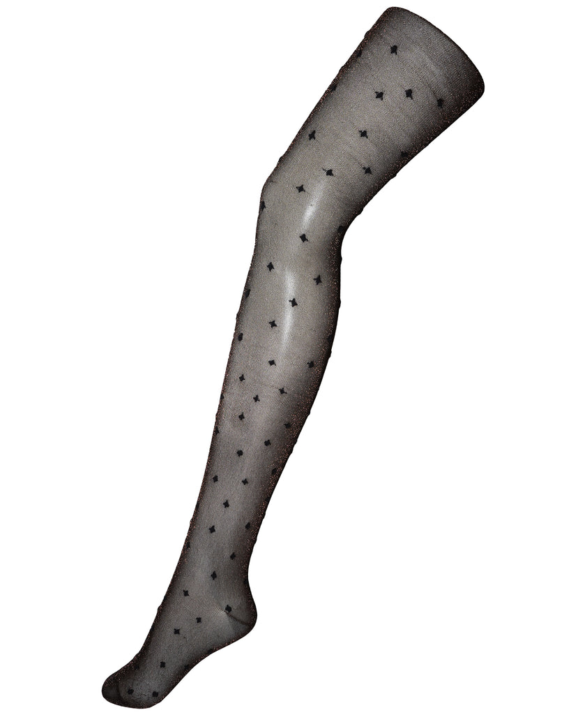 キラキラ星型の刺繍が散りばめられた透け感のある薄手のラメストッキング。