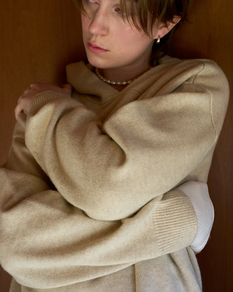 ピュアカシミヤ100%のオーバーサイズのフーディは、暖かくて柔らかい素材で、上質な着心地です。フードは大きめに作られており、おしゃれのポイントにもなります。程よい厚さで上にジャケットを着たり、ベストとレイヤードもおすすめです。