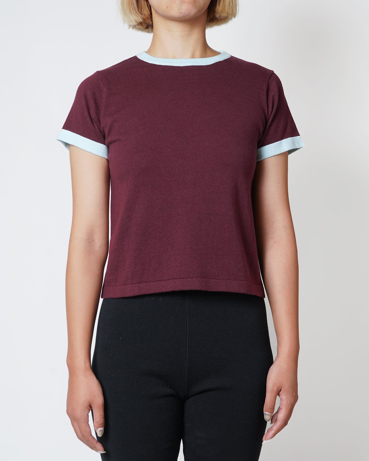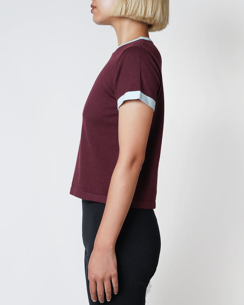 上質なコットンにカシミヤをブレンドした肌触りのいいリンガーTシャツ。